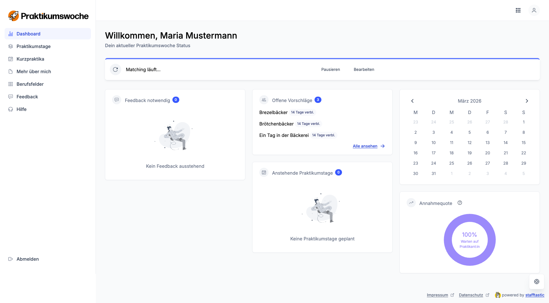 Wie du vorgehst, wenn du Vorschläge bekommst und wo du deine Praktikumstage ansehen kannst.