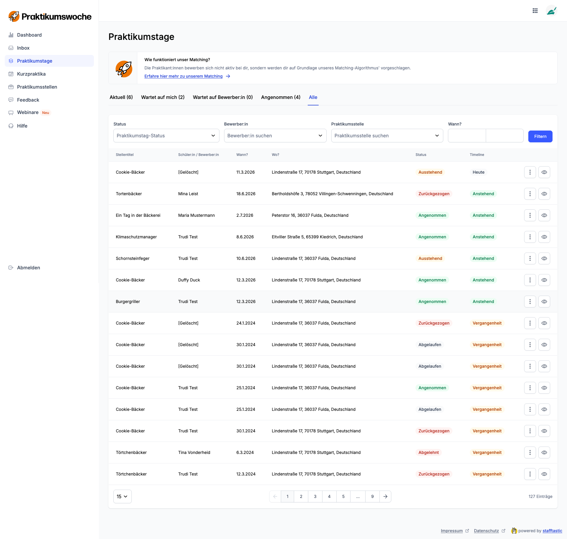 Die E-Mails zu den Vorschlägen erhalten die in den Praktikumsstellen hinterlegten Ansprechpersonen.
